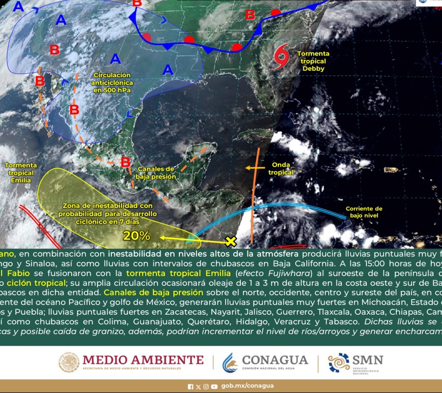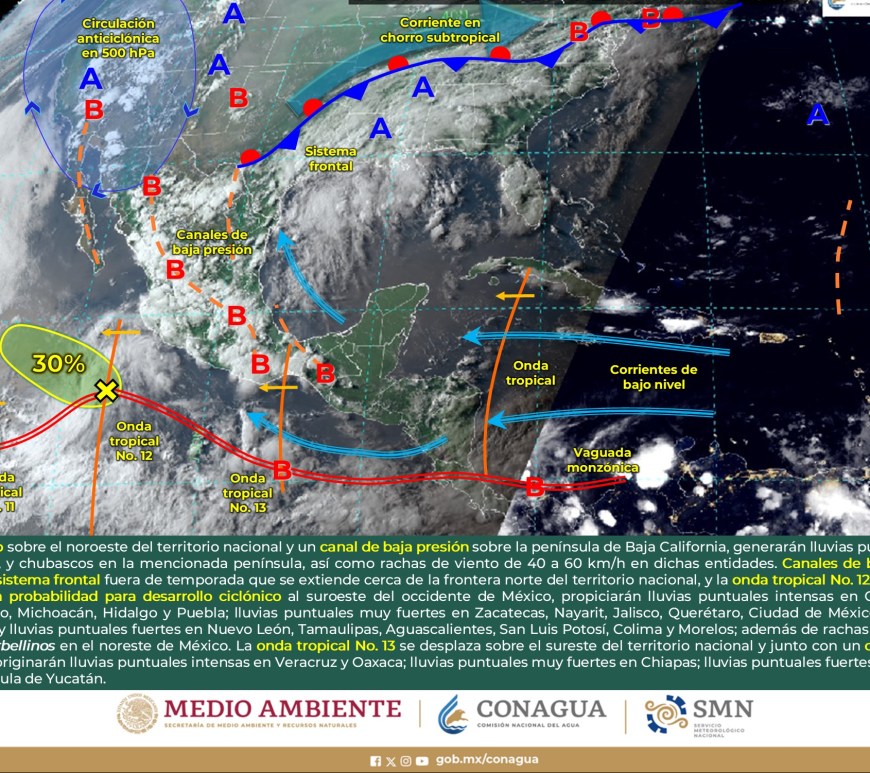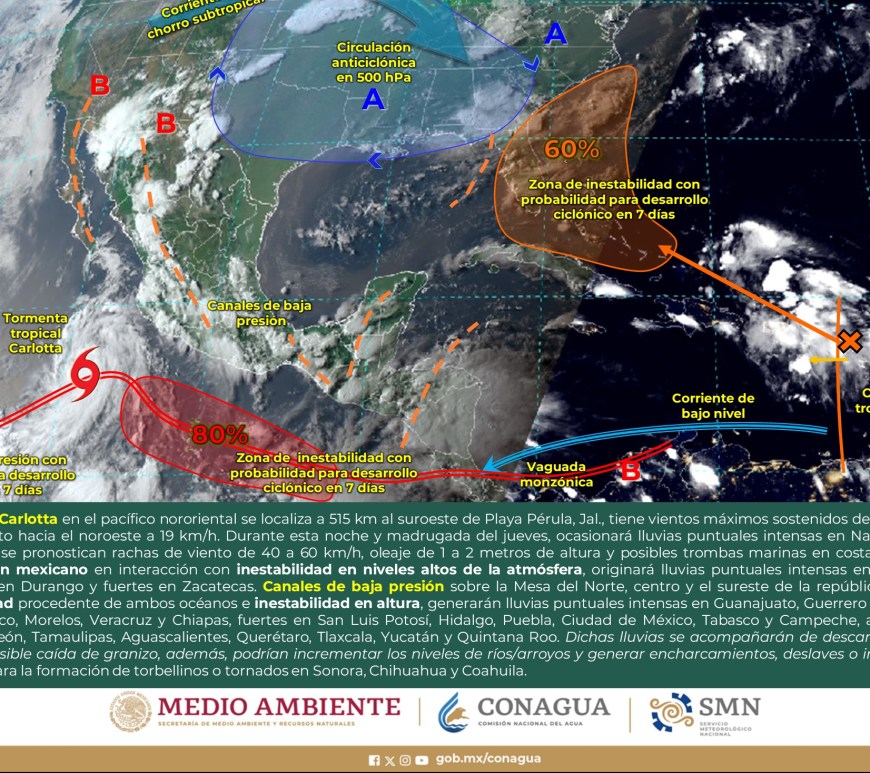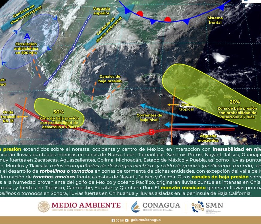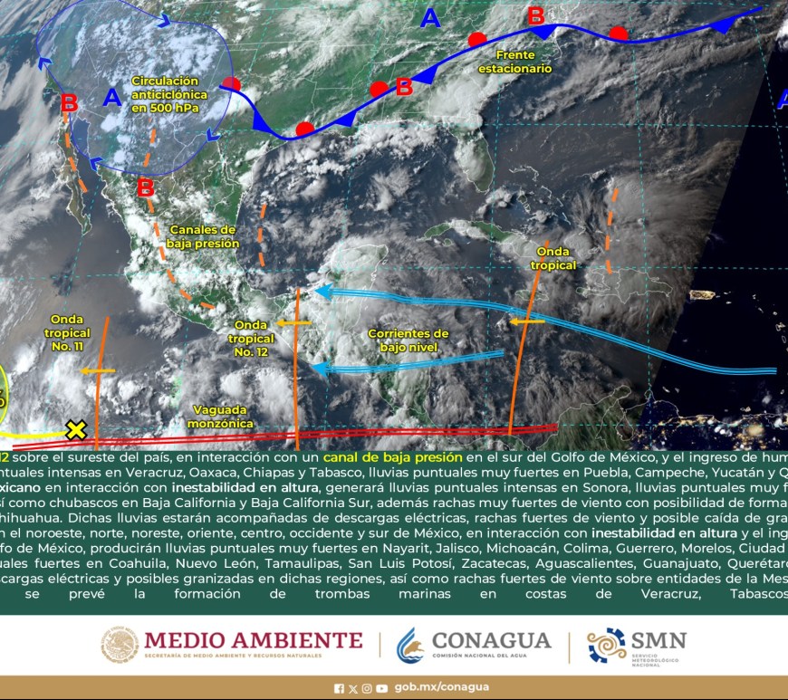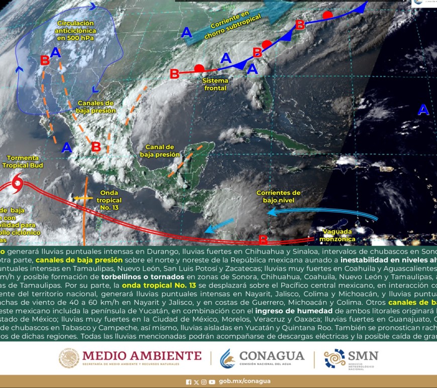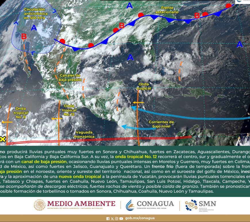 Por la mañana, cielo medio nublado con ambiente templado a fresco y frío en sierras de Durango. Bancos de niebla en zonas serranas de la región. Durante la tarde, ambiente cálido y caluroso en zonas de Chihuahua, Coahuila y Nuevo León. Lluvias puntuales muy fuertes en Chihuahua y Durango, acompañadas de descargas eléctricas, rachas fuertes de viento y posible caída de granizo; además, podrían reducir la … Continúa leyendo Pronóstico Meteorológico 8 de Agosto
