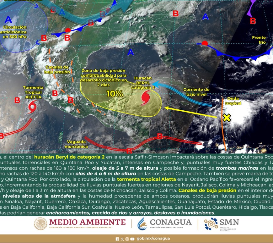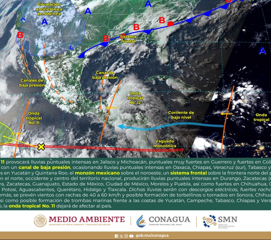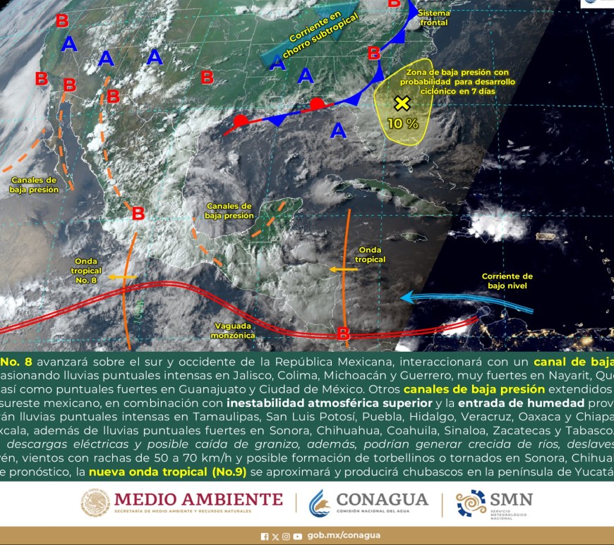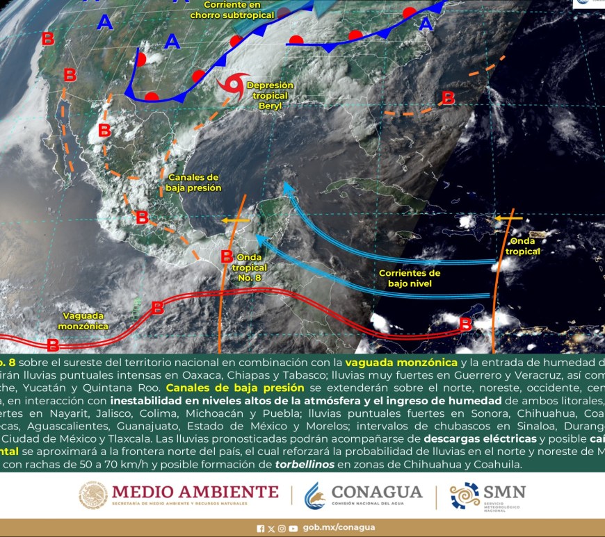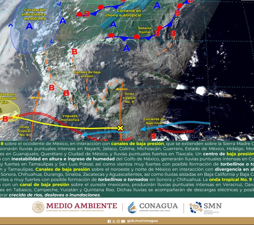 Cielo medio nublado a nublado en el transcurso del día. Ambiente frío en zonas serranas de Durango. Nieblas al amanecer en zonas serranas. Por la tarde, lluvias puntuales muy fuertes en Chihuahua, Durango y Zacatecas (sur), y puntuales fuertes en Coahuila, San Luis Potosí y Aguascalientes; las cuales podrían ocasionar encharcamientos, inundaciones y deslaves, así como incremento en los niveles de ríos y arroyos. Intervalos de chubascos … Continúa leyendo Pronóstico Meteorológico 20 de Julio