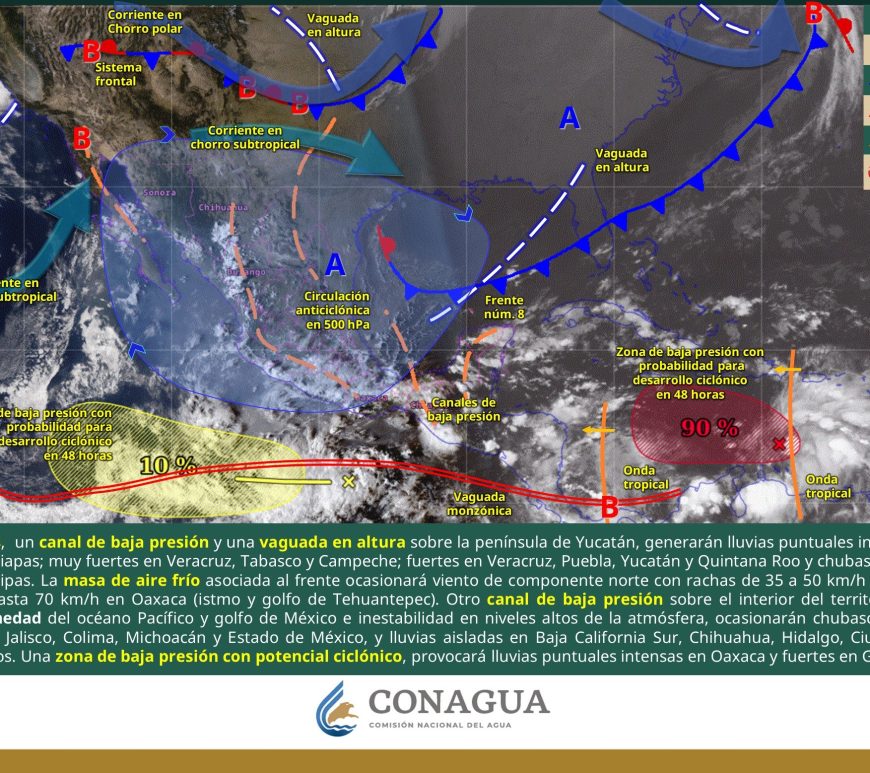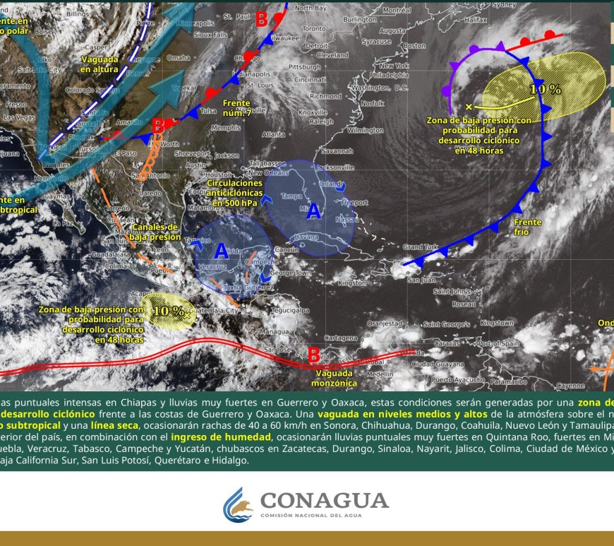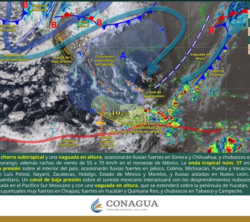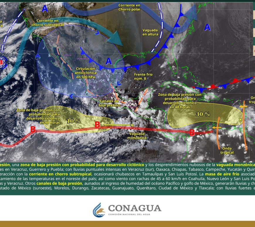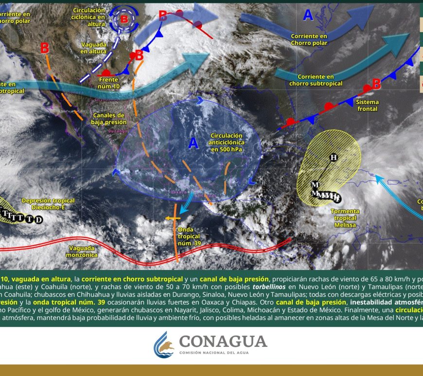 Cielo medio nublado con lluvias aisladas en Nuevo León y San Luis Potosí (región Altiplano). Cielo despejado y sin lluvia en Chihuahua, Coahuila, Durango, Zacatecas y Aguascalientes. Por la mañana, ambiente fresco, siendo frío con posibles heladas en sierras de Chihuahua y Durango. Durante la tarde, ambiente cálido a caluroso. Viento de dirección variable de 10 a 20 km/h con rachas de 35 a 50 … Continúa leyendo Pronóstico Meteorológico