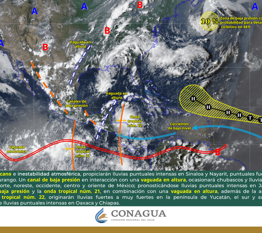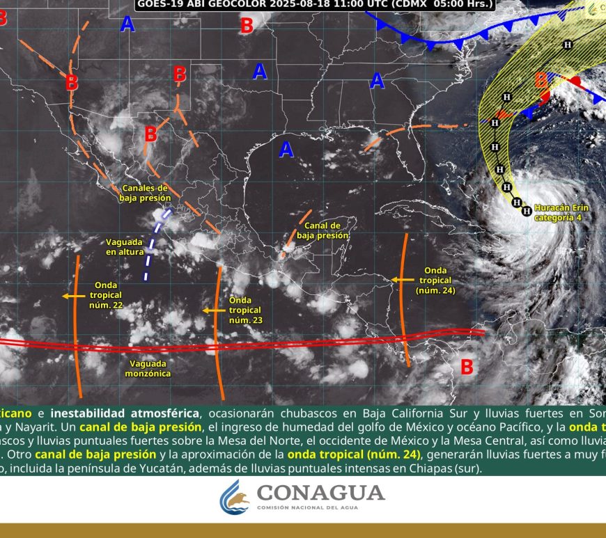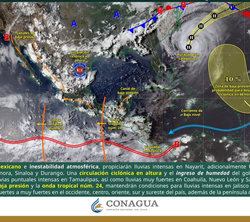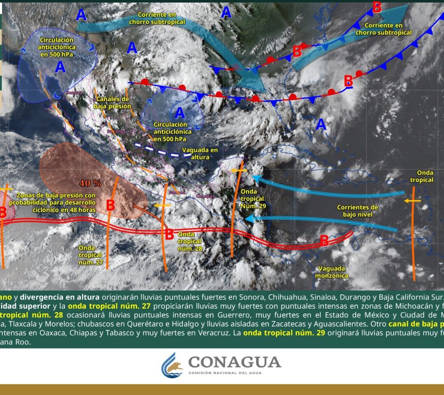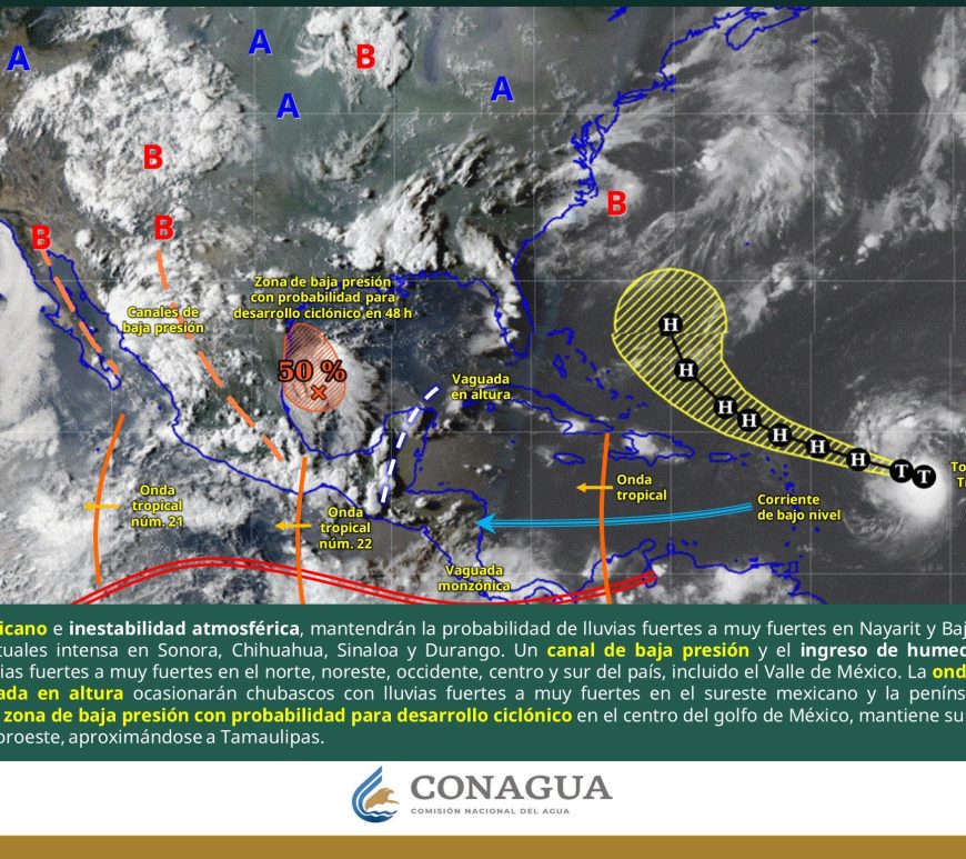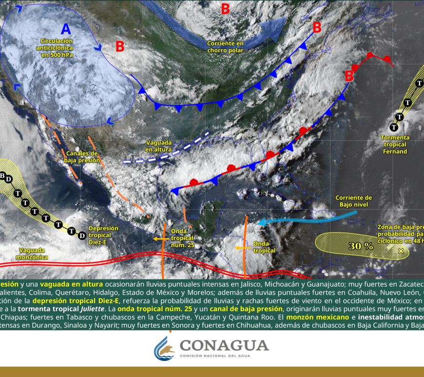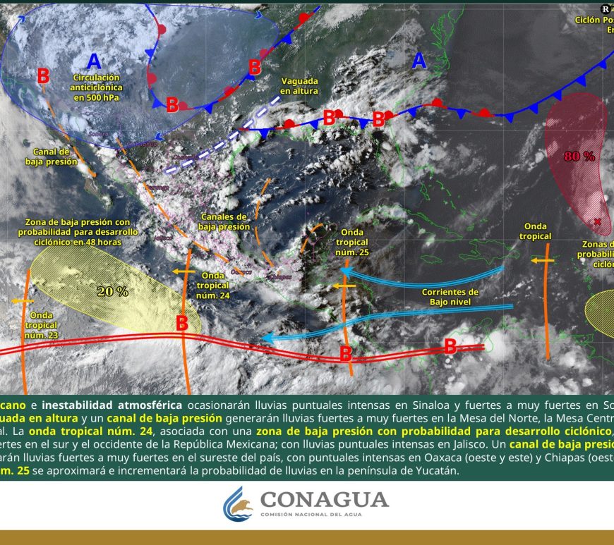 LLUVIAS INTENSAS EN CHIHUAHUA, COAHUILA, PUEBLA, GUERRERO, OAXACA, CHIAPAS, VERACRUZ Y TABASCO Cielo medio nublado a nublado en el transcurso del día. Por la mañana, ambiente fresco a templado, frío en la sierra de Durango y con bancos de niebla en las sierras de Chihuahua, Durango y San Luis Potosí. Durante la tarde, ambiente cálido a caluroso; lluvias puntuales intensas en Chihuahua (centro); muy fuertes … Continúa leyendo Pronóstico Meteorológico