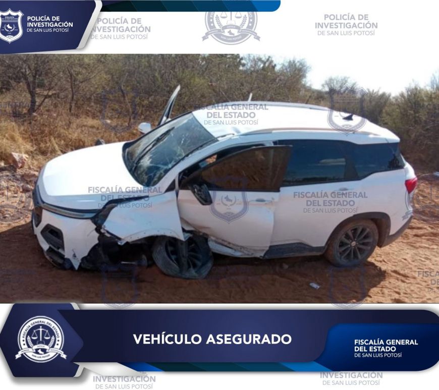 Fiscalía Potosina asegura vehículo abandonado en carretera de Villa de Ramos