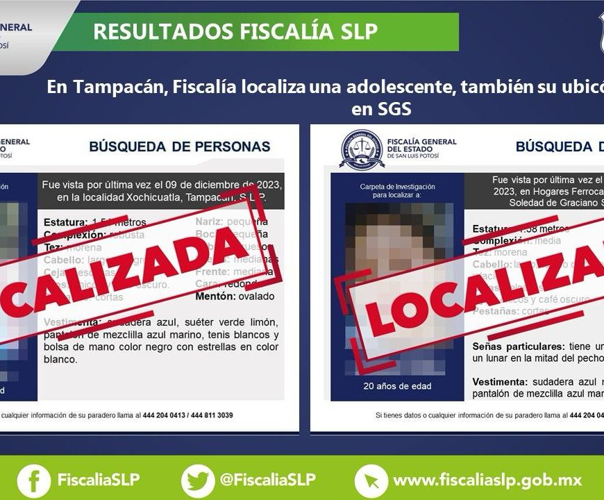 Fiscalía de SLP informa localización de una mujer buscada en SGS