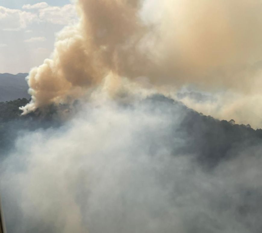 Autoridades de los tres niveles de gobierno combaten incendio forestal en Santa María del Río