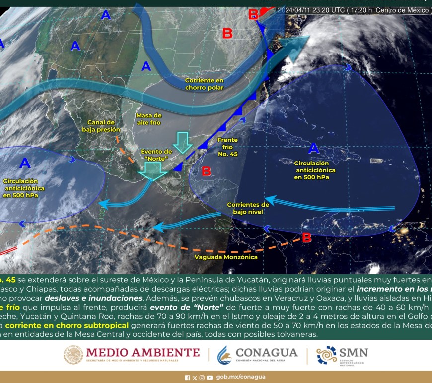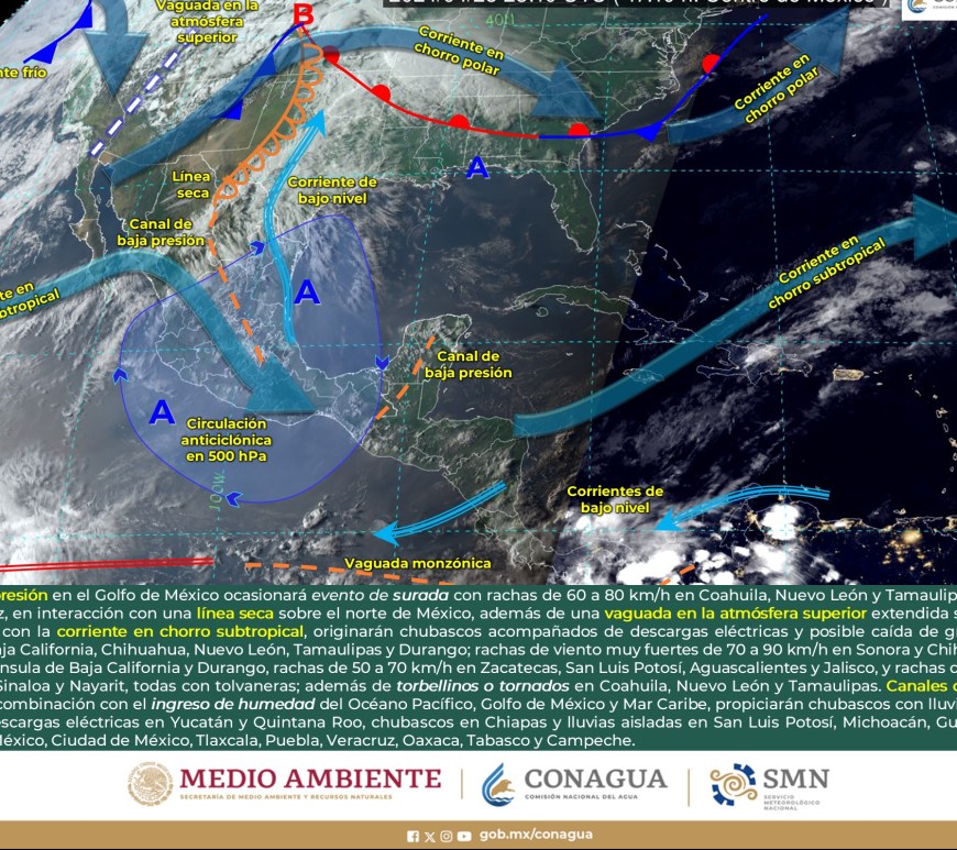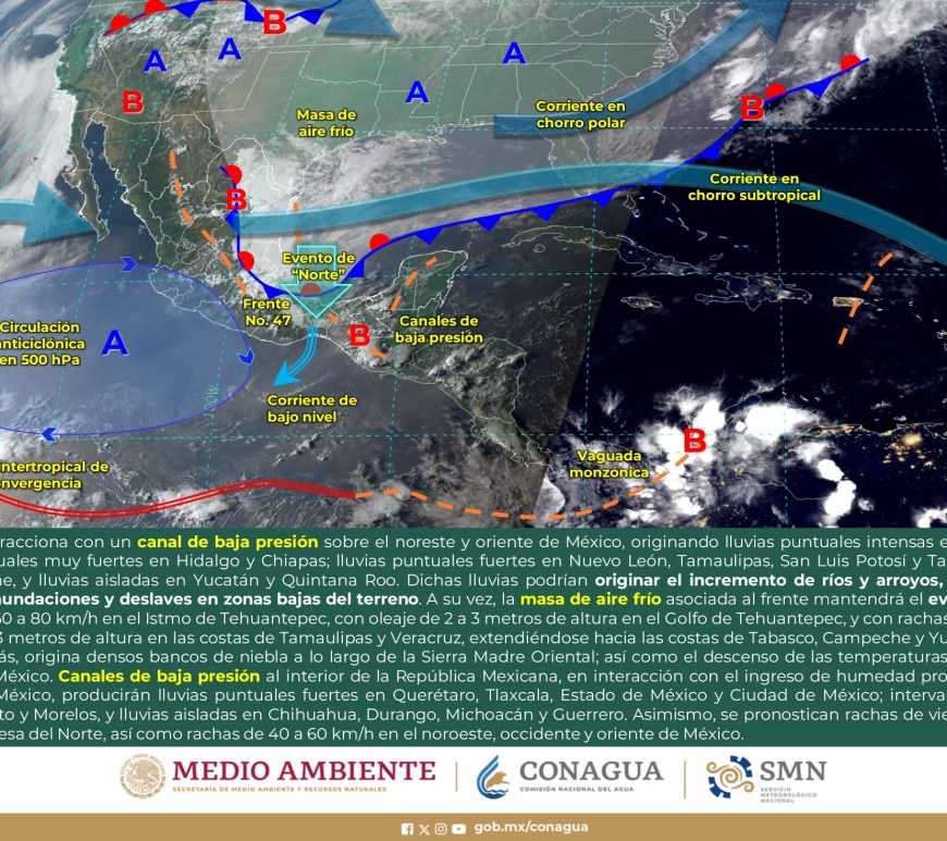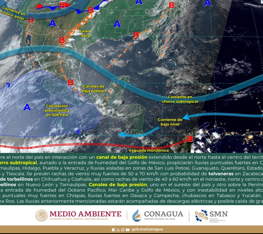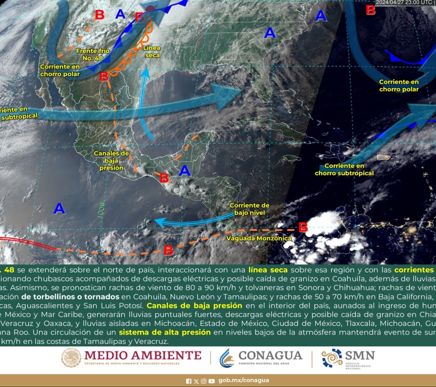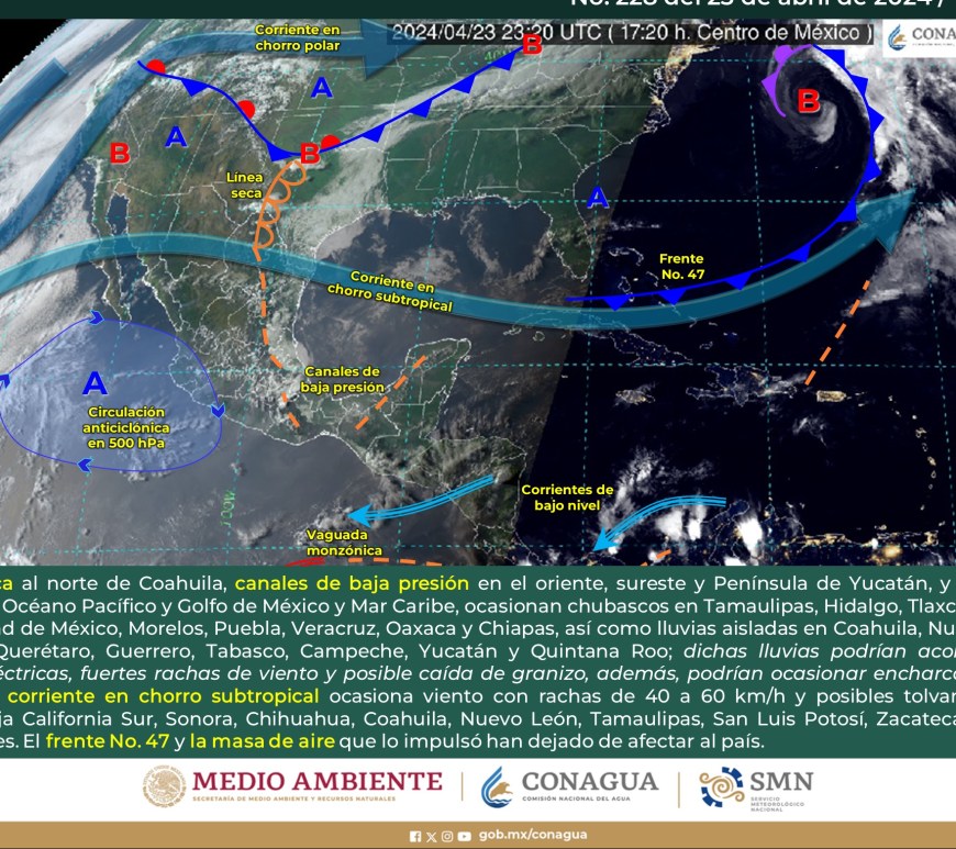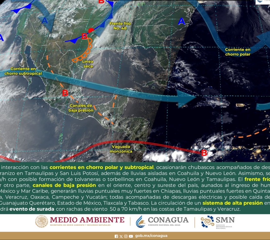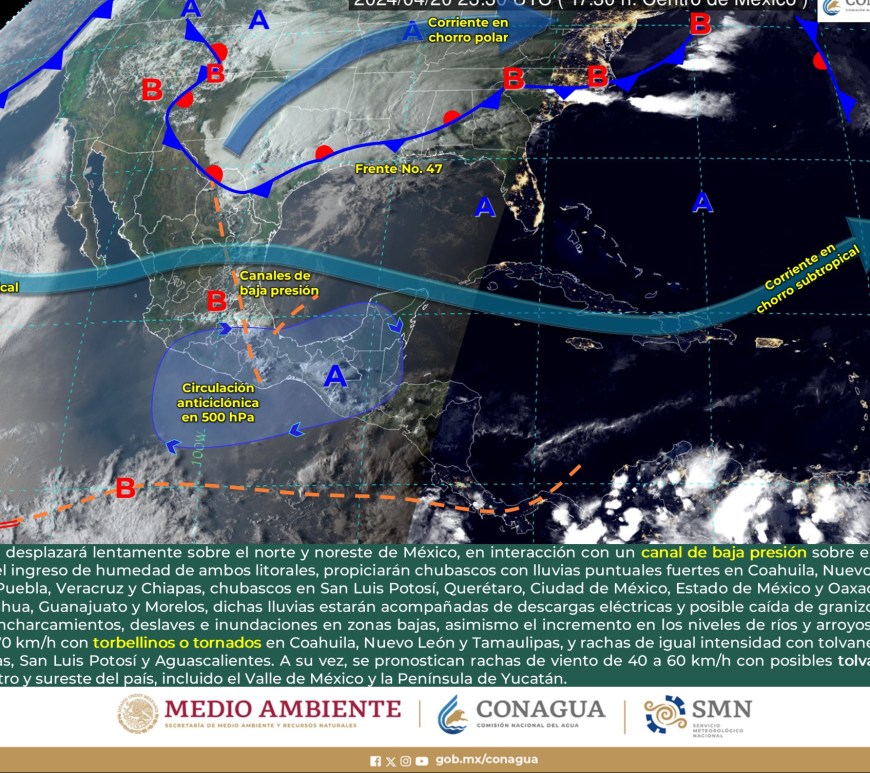 Cielo nublado la mayor parte del día con lluvias puntuales fuertes en Coahuila las cuales podrían originar encharcamientos, inundaciones y deslaves. Cielo medio nublado a nublado con chubascos en Nuevo León y lluvias aisladas en San Luis potosí. Las lluvias se podrían acompañar de descargas eléctricas y caída de granizo. Sin lluvia en Chihuahua, Durango, Zacatecas y Aguascalientes. Ambiente fresco por la mañana y de frío … Continúa leyendo Pronóstico Meteorológico 1 de Mayo.
