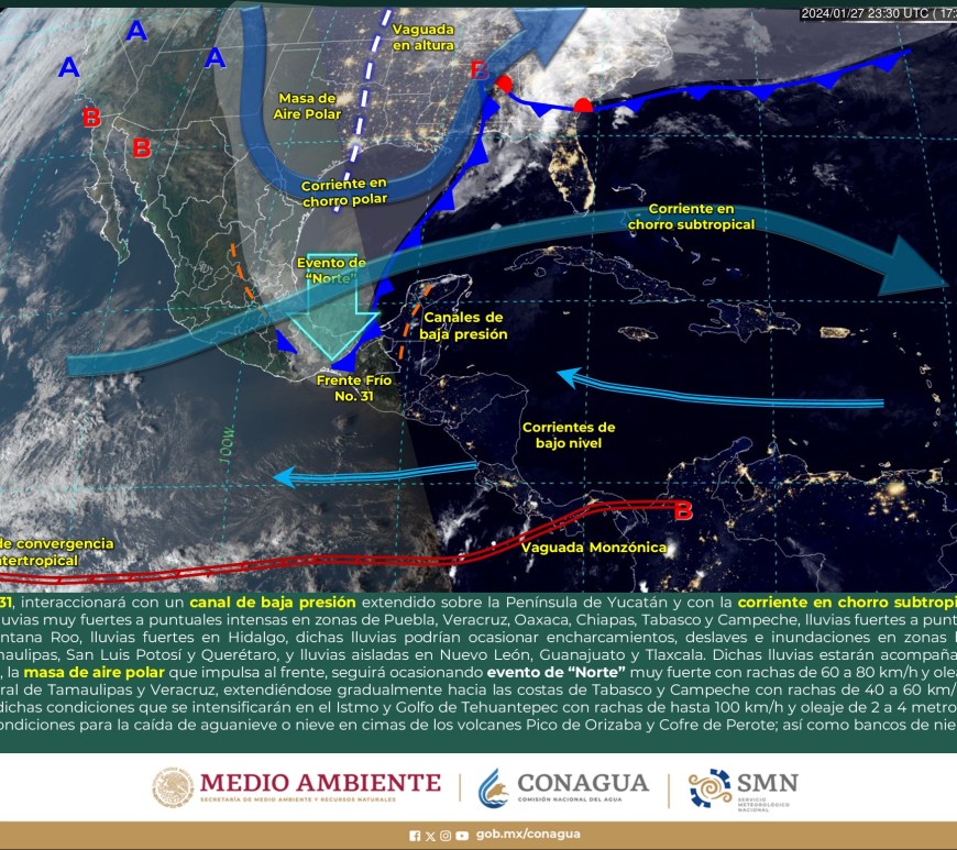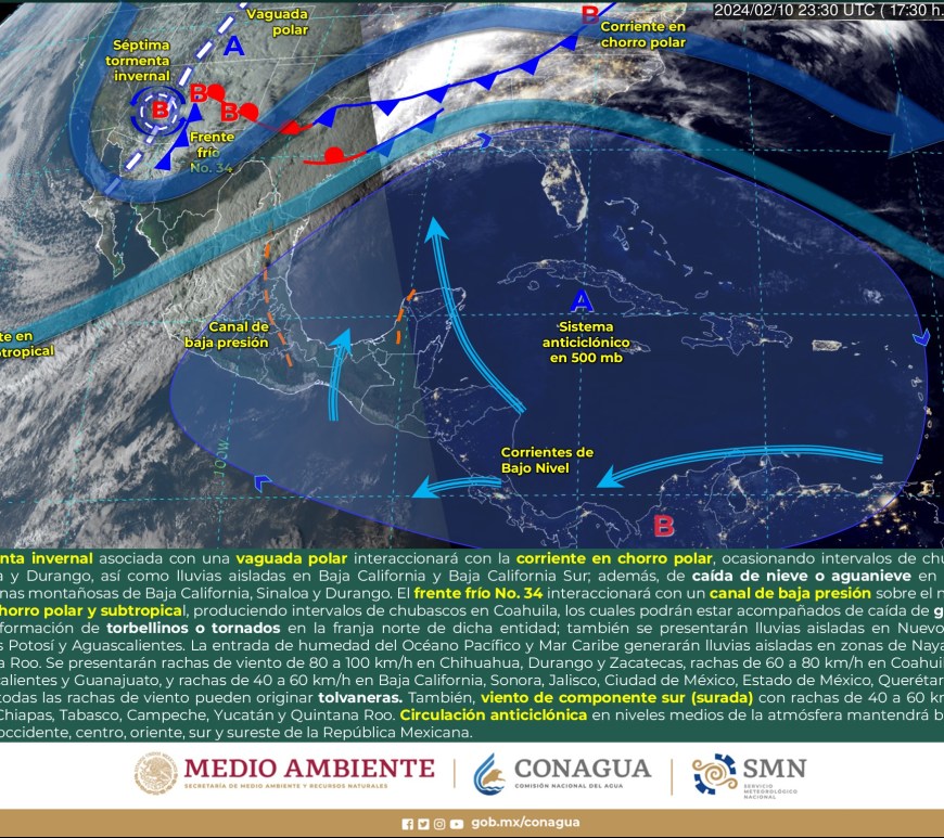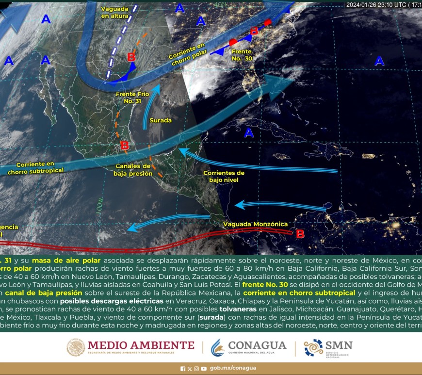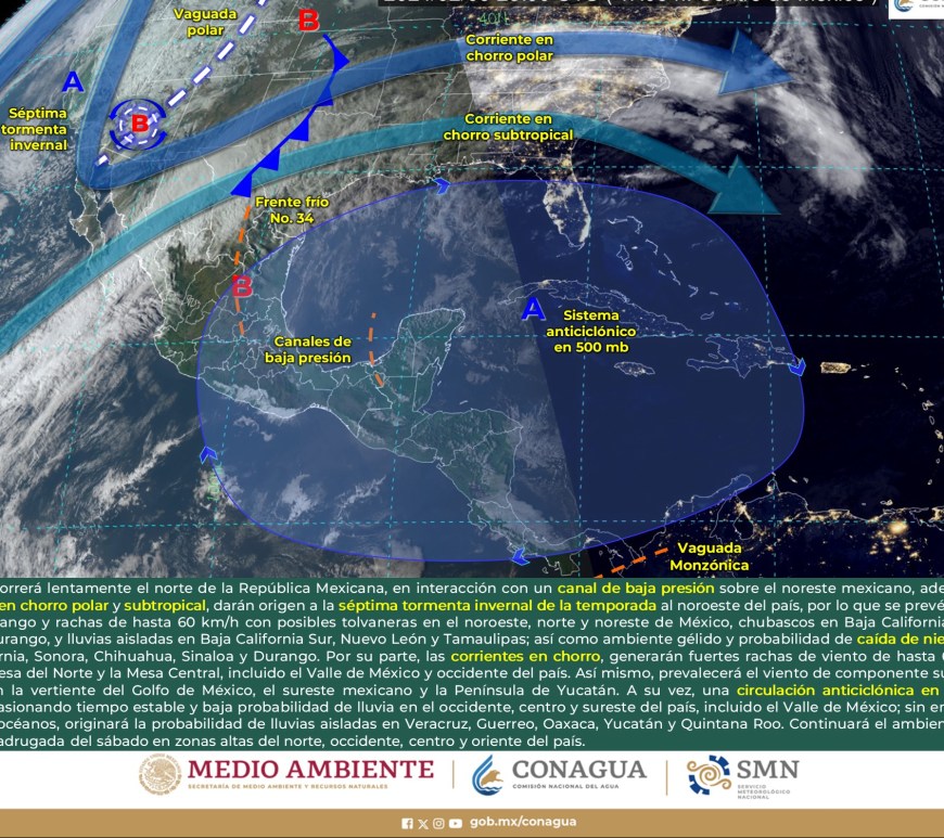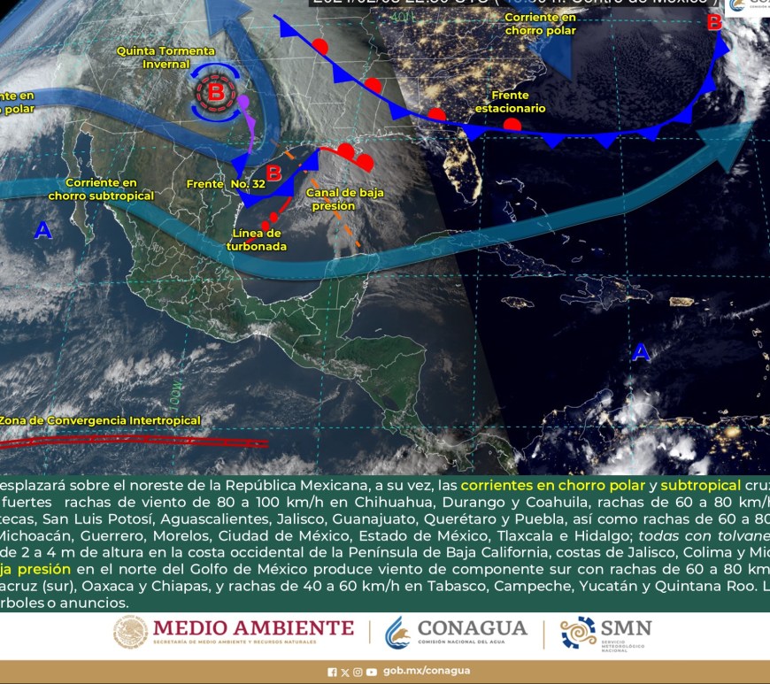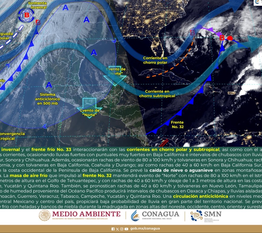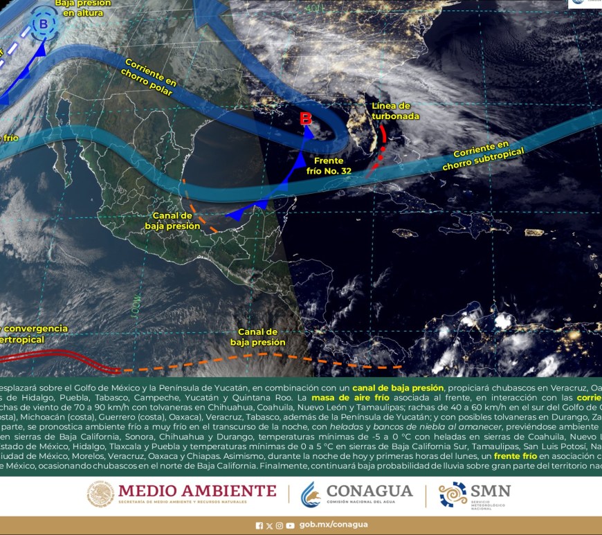 Cielo parcialmente nublado a medio nublado, con probabilidad de intervalos de chubascos en San Luis Potosí y lluvias aisladas en Chihuahua, Coahuila y Nuevo León, sin lluvia en el resto de la región. Ambiente matutino fresco a frío, y muy frío a gélido con heladas y bancos de niebla en zonas serranas de la región, así como posible caída de nieve o aguanieve en sierras de Chihuahua y lluvia engelante en zonas de … Continúa leyendo Pronóstico Meteorológico 11 de Febrero