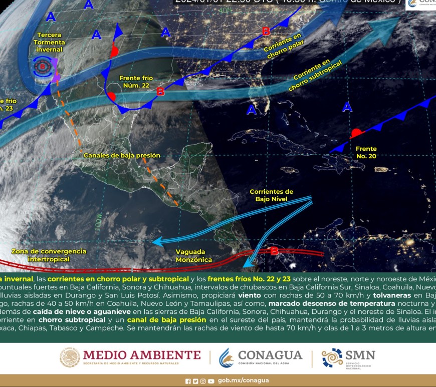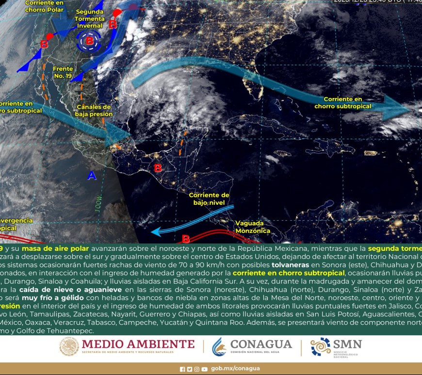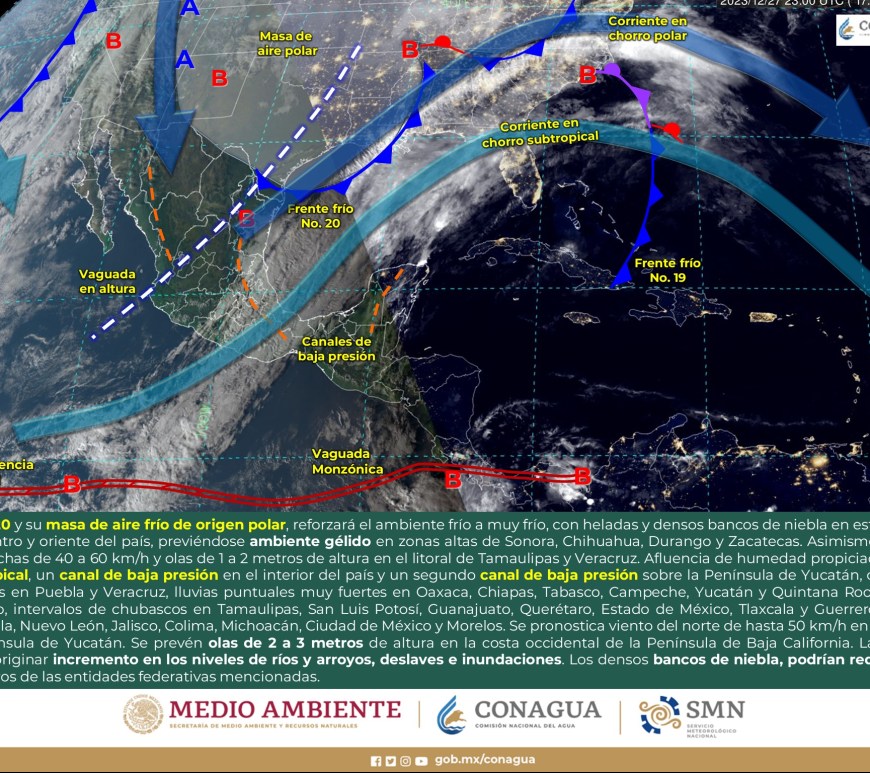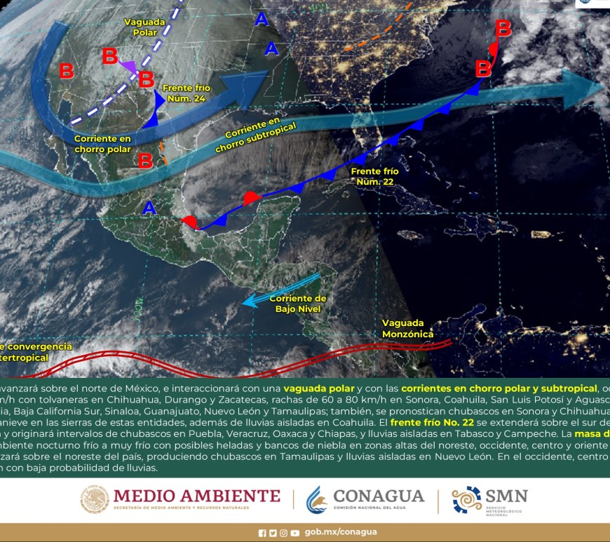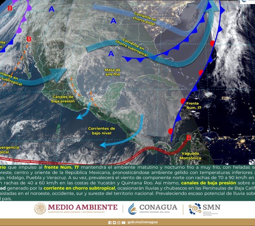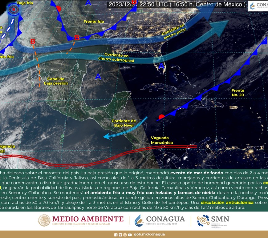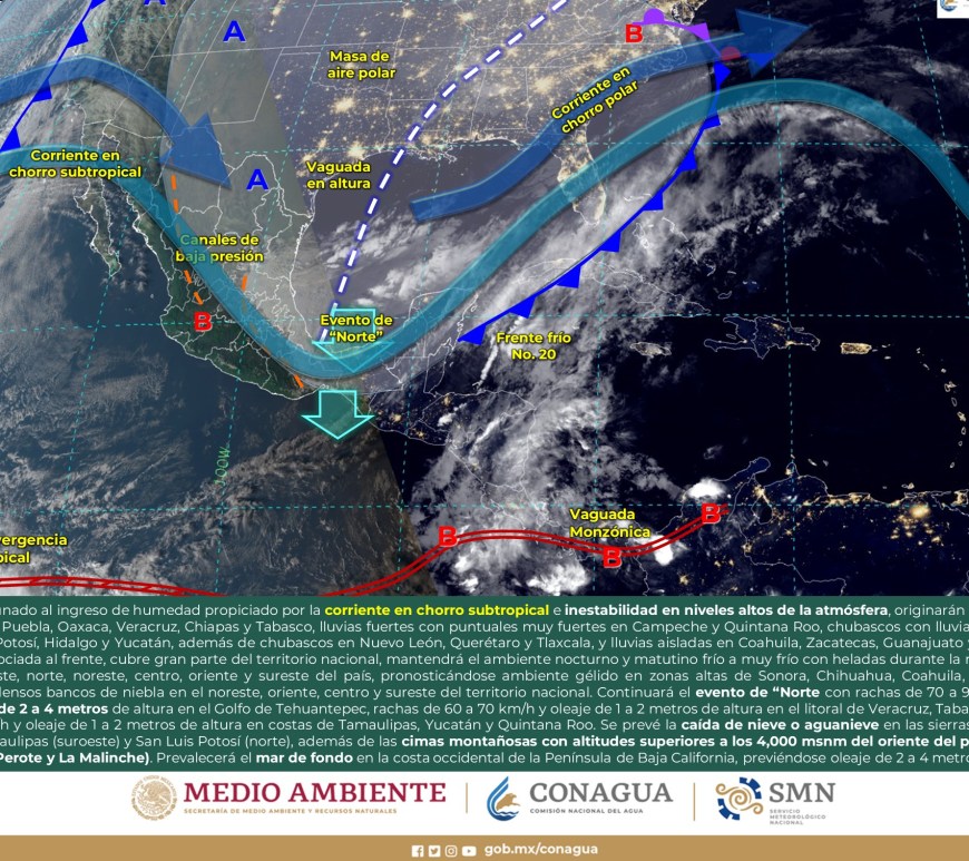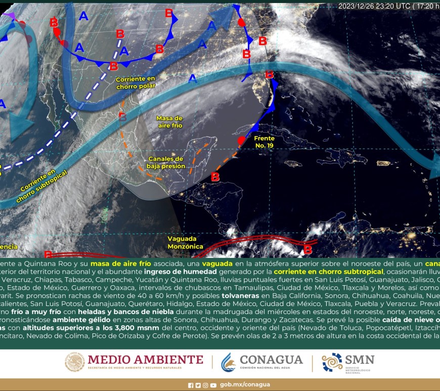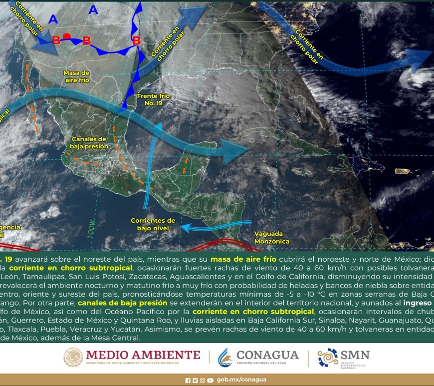 Cielo despejado a parcialmente nublado durante el día con probabilidad de lluvias aisladas en San Luis Potosí, sin lluvia en el resto de la región. Por la mañana, ambiente muy frío a gélido con heladas en zonas altas de la región. Ambiente fresco a templado por la tarde. Viento de componente oeste de 15 a 30 km/h con rachas de 50 a 70 km/h y … Continúa leyendo Pronóstico Meteorológico 5 de Enero