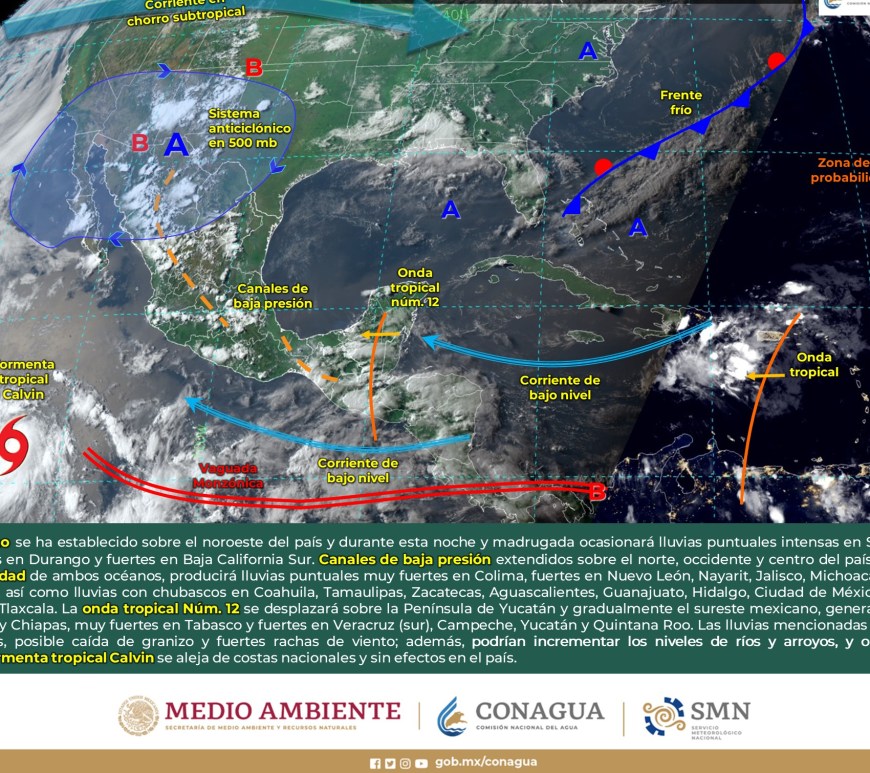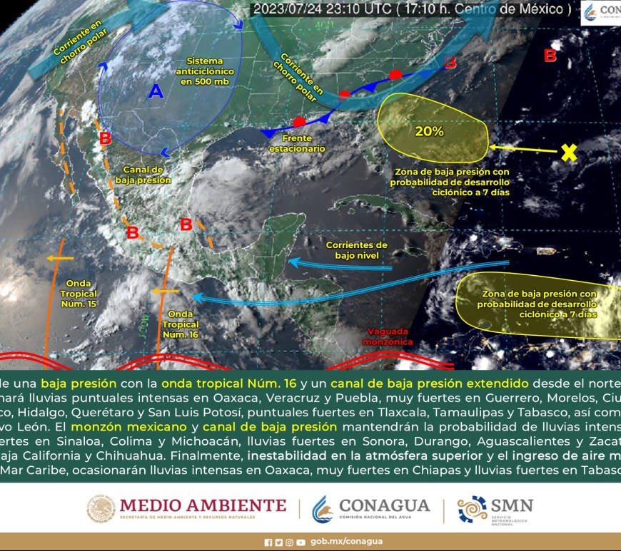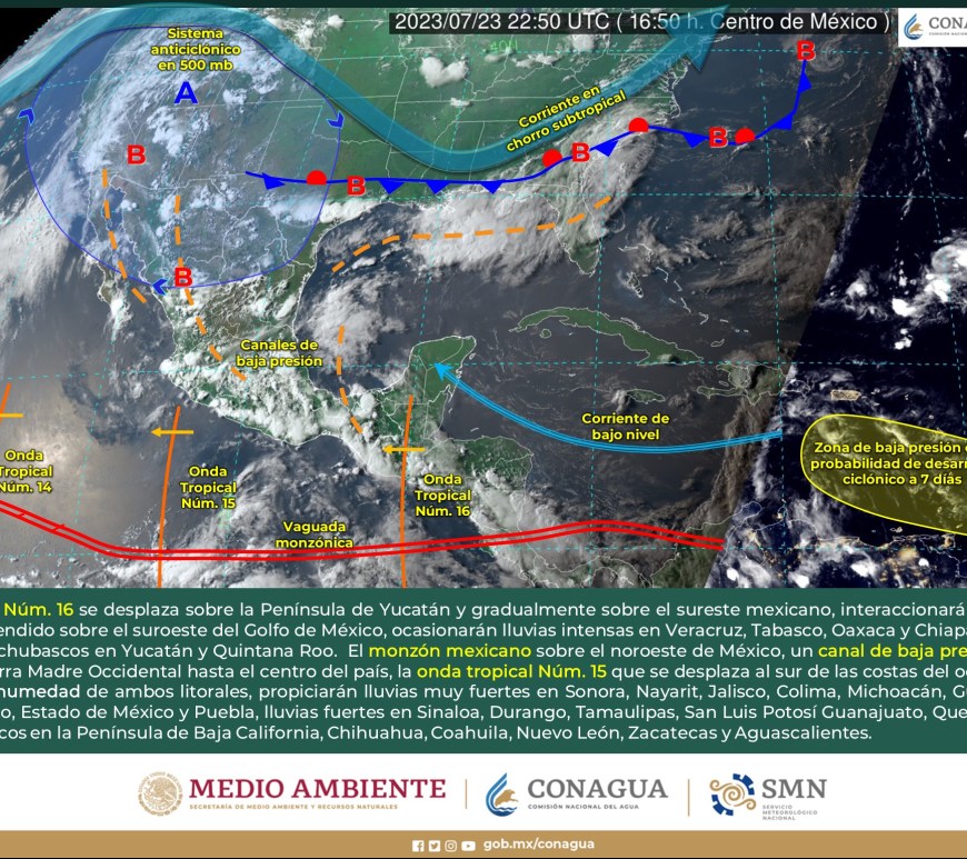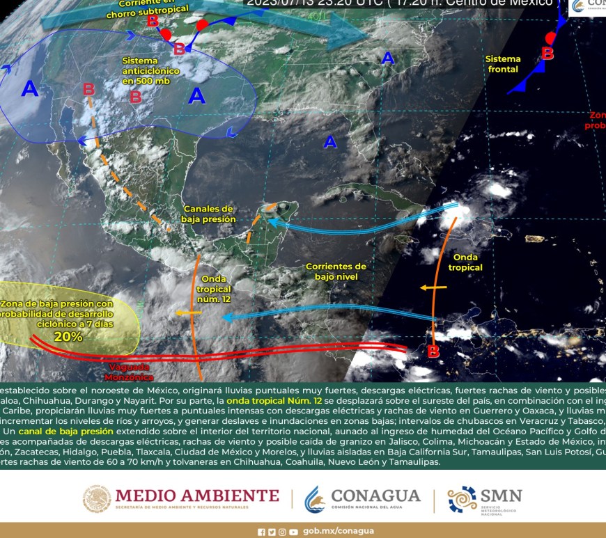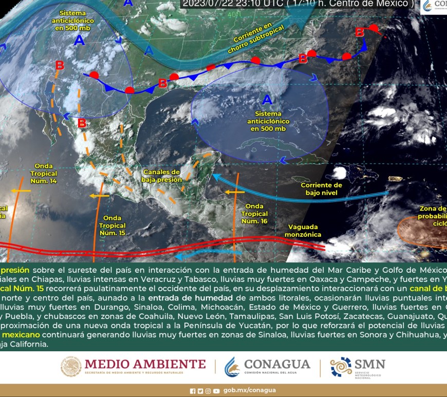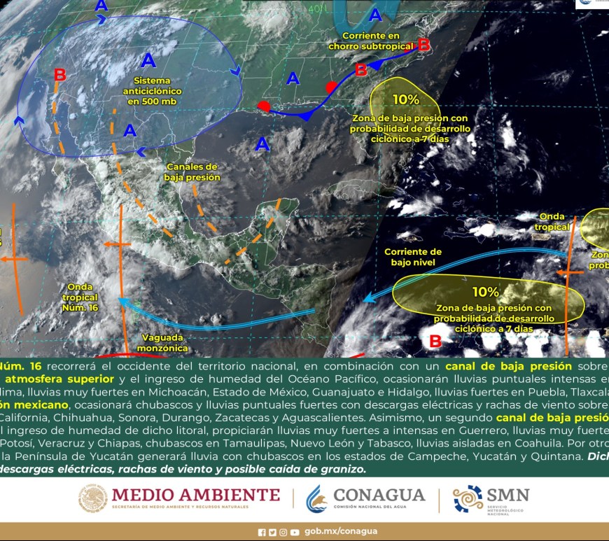 Cielo parcialmente nublado por la mañana y nublado en el transcurso de la tarde, con lluvias puntuales fuertes en Durango, Zacatecas, Aguascalientes, chubascos en Chihuahua, Coahuila, San Luis Potosí y Nuevo León, acompañadas de descargas eléctricas y posible caída de granizo, las cuales podrían incrementar los niveles de ríos y arroyos, y generar deslaves e inundaciones. Ambiente fresco por la mañana y caluroso a muy caluroso durante la … Continúa leyendo Pronóstico Meteorológico 26 de Julio