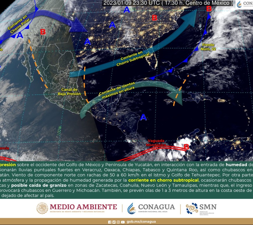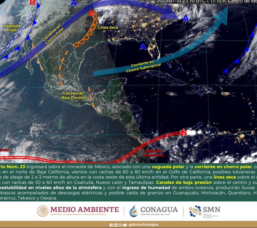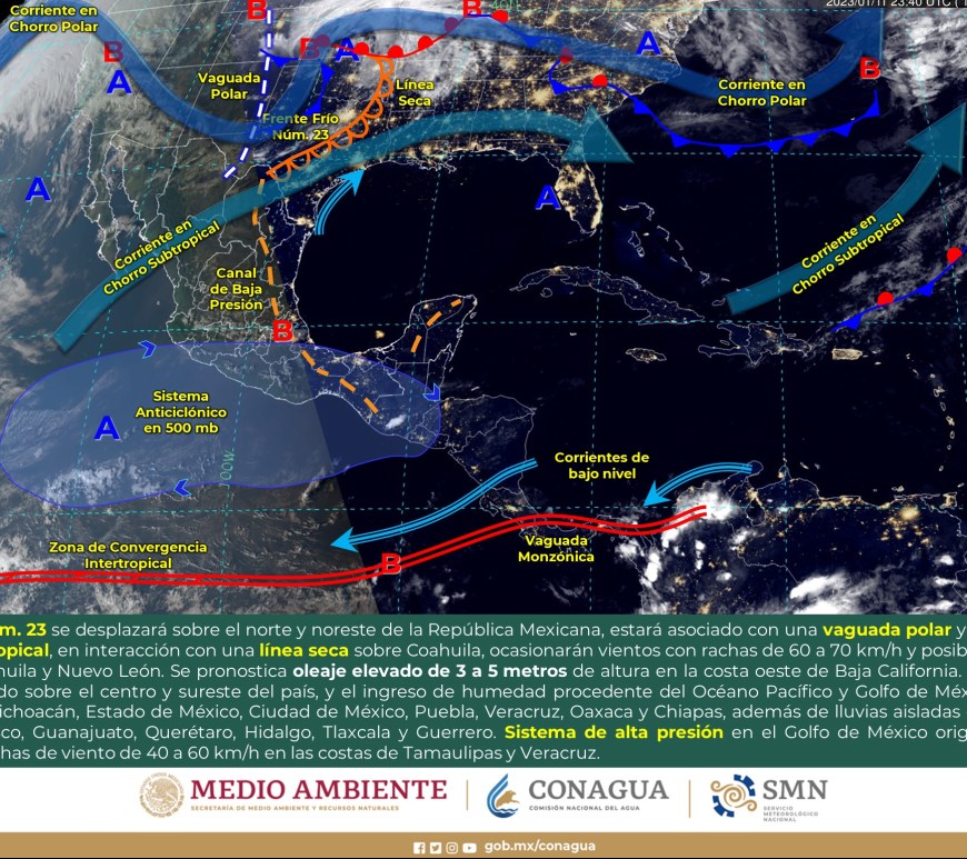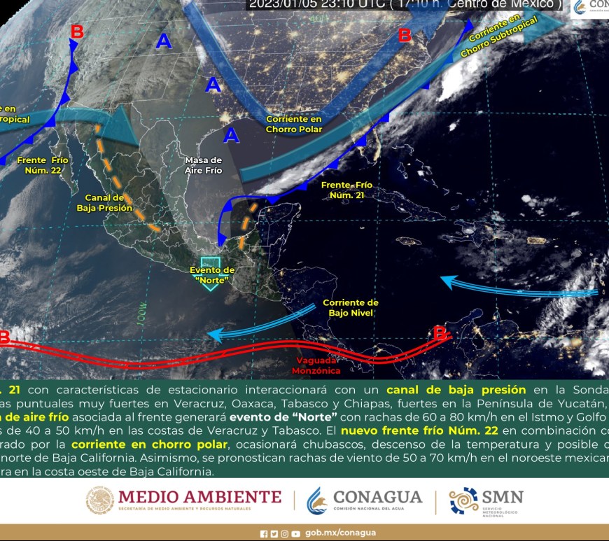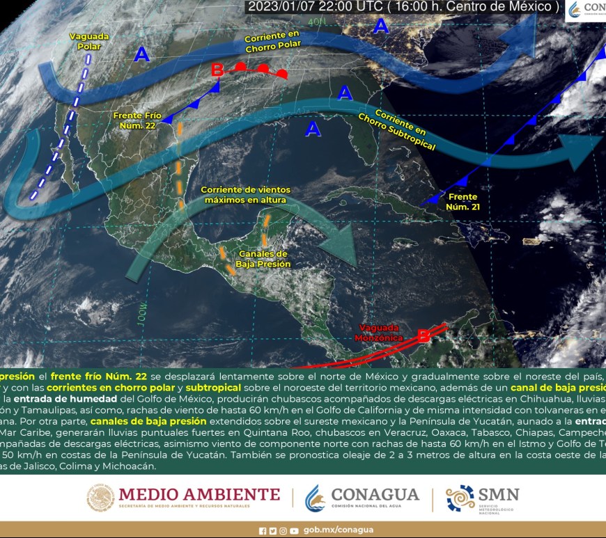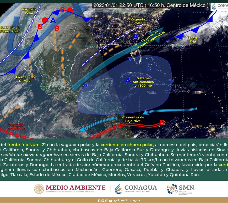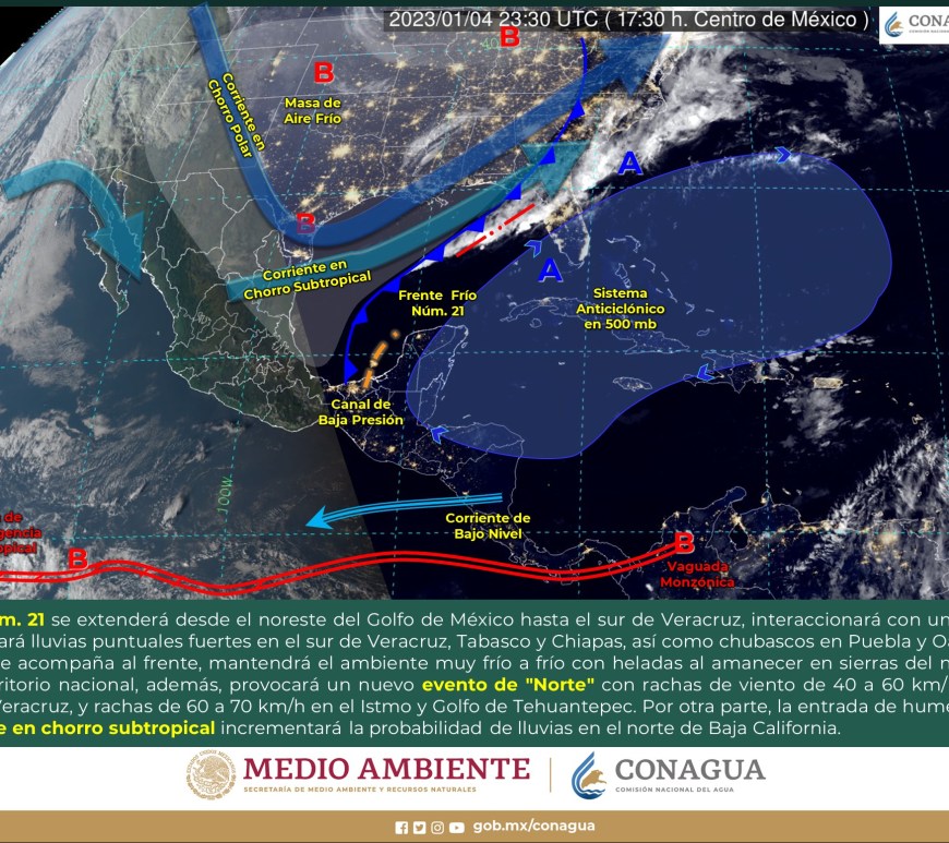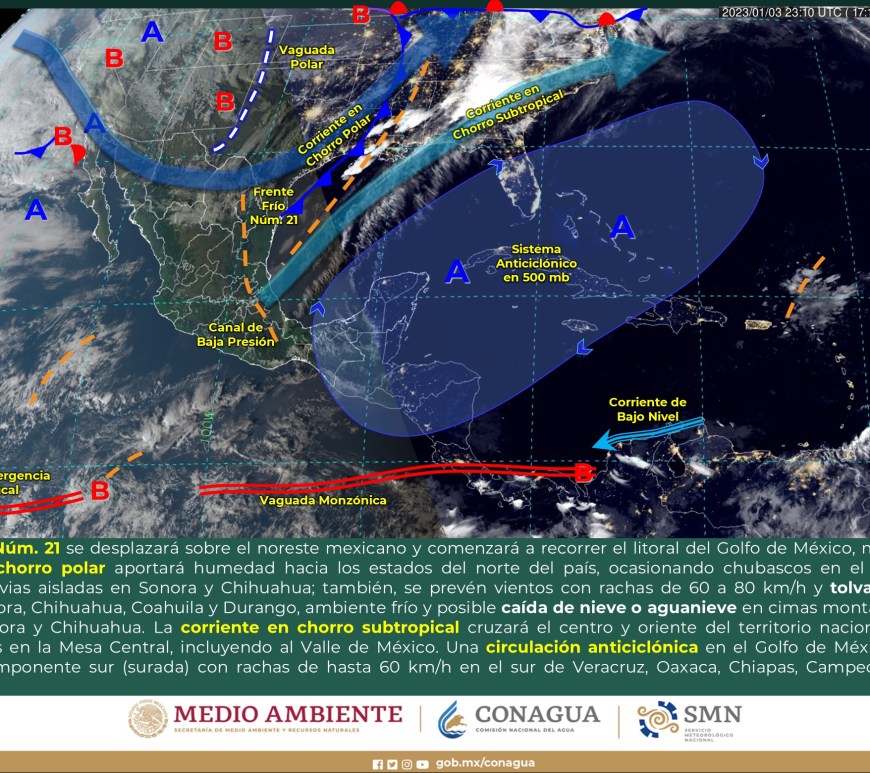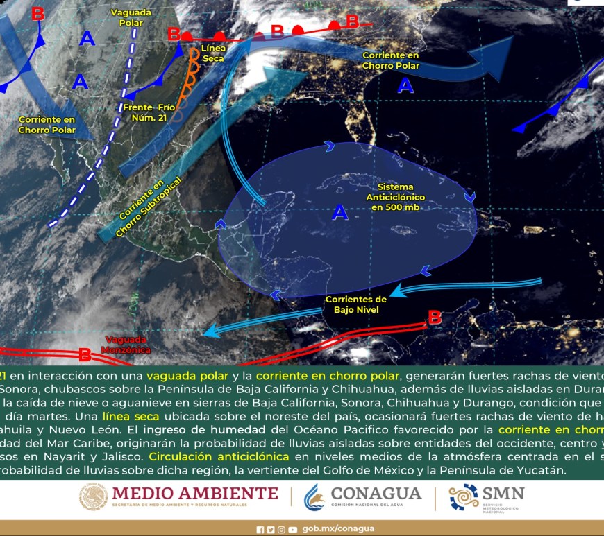 Cielo parcialmente nublado por la mañana y medio nublado por la tarde, con lluvias y chubascos en San Luis Potosí. Sin lluvia en el resto de la región. Ambiente matutino frío a muy frío con posibles heladas en zonas serranas, siendo gélido en zonas montañosas de Chihuahua y Durango. Viento del este de 15 a 30 km/h con rachas de 60 a 80 km/h y … Continúa leyendo Pronóstico Meteorológico 12 Enero