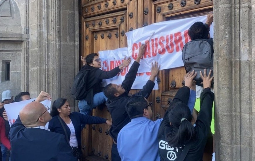 Lanzan bombas molotov a la puerta principal de Palacio Nacional
