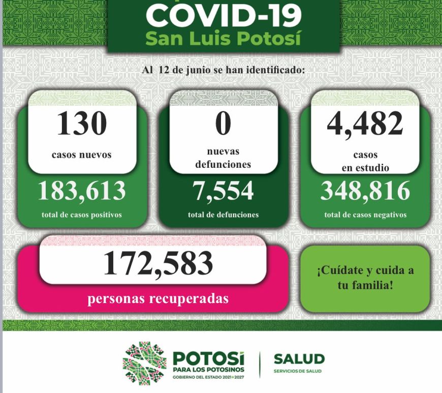 Acude a vacunarse contra Covid-19. En SLP el cubrebocas es obligatorio. Los casos activos de Covid-19 se han incrementado en todo el país desde hace ocho días, en el Estado, de acuerdo a la información de la Secretaría de Salud del Gobierno Federal se han incrementado de manera considerable, y actualmente hay más de mil 200 personas contagiadas, por lo que se insiste a la población en … Continúa leyendo Aplicar Las Medidas De Prevención, Sigue Siendo La Manera Efectiva De Disminuir Contagios.