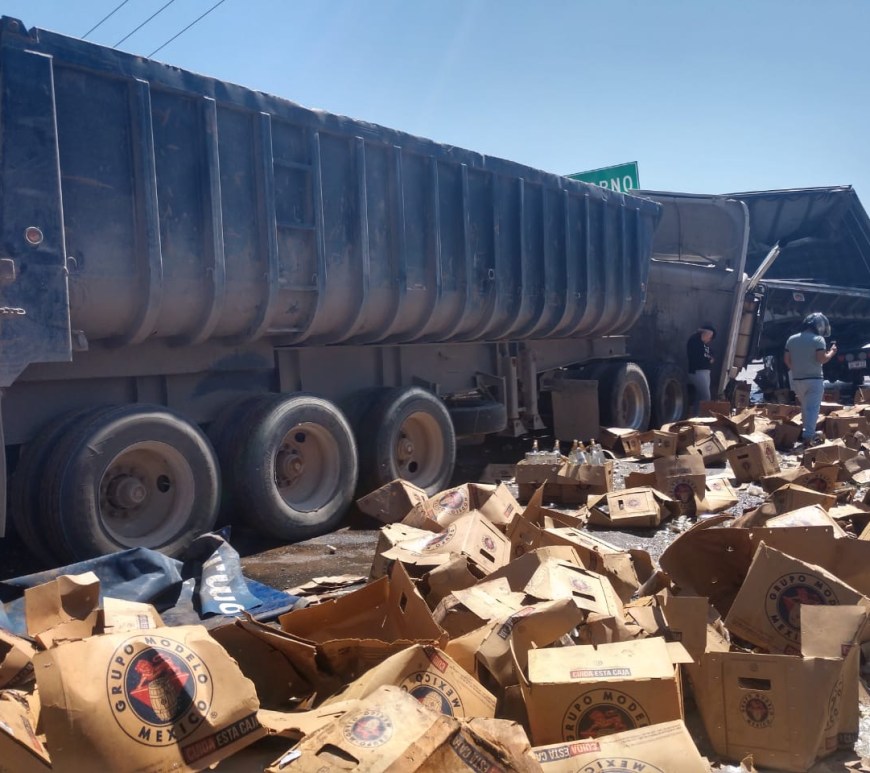 Rapiña a trailer lleno de cerveza que se accidenta sobre la carretera