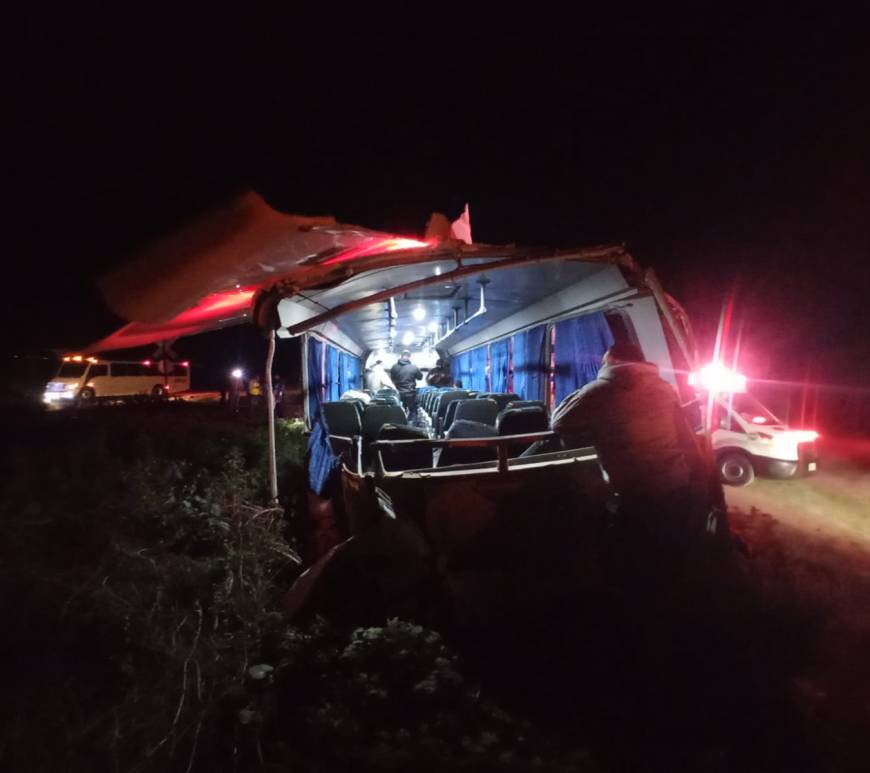 Transporte de personal UTEP choca contra tráiler en Villa de Reyes, 1 muerto y 9 lesionados