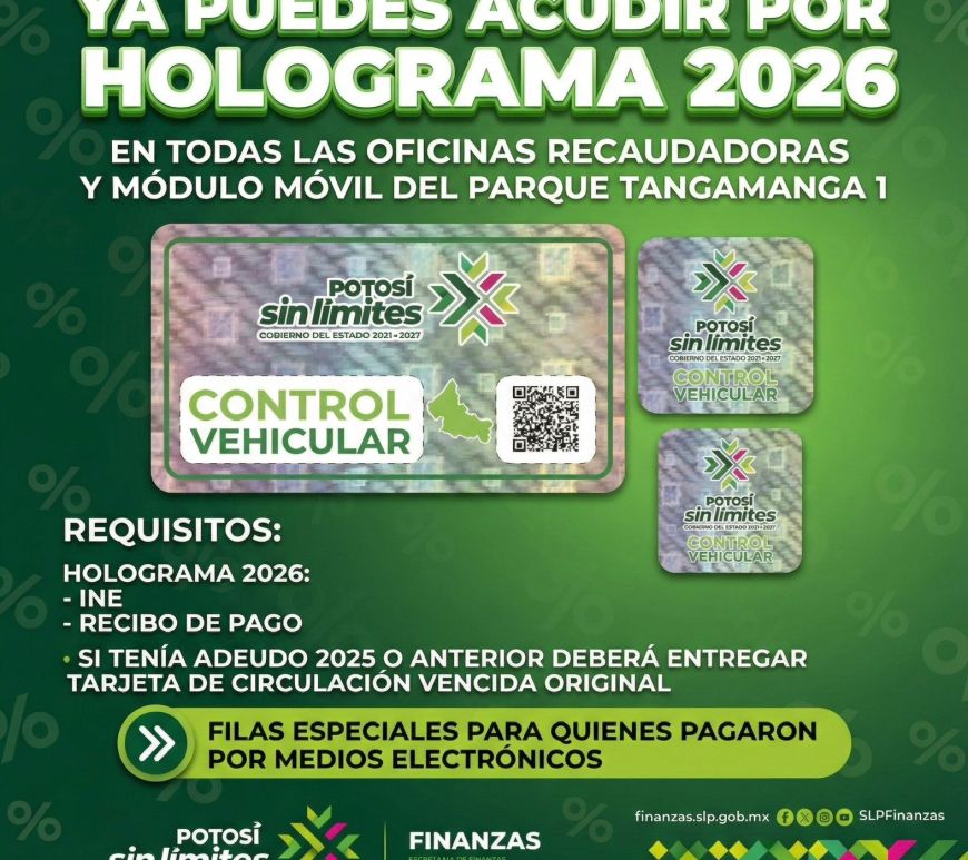 -Para las personas que ya realizaron el pago de Control Vehicular solo deberán presentar INE y Recibo para recibir su holograma en fila especial. La Secretaría de Finanzas (Sefin) informó que el holograma de control vehicular 2026 ya se encuentra disponible en la totalidad de las oficinas recaudadoras, así como en el módulo móvil instalado en el parque Tangamanga I, lo que permite a las … Continúa leyendo Holograma vehicular 2026 disponible en todas las recaudadoras: Finanzas