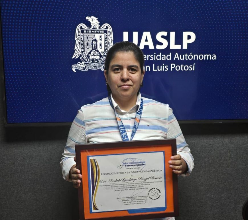La docente investigadora de la Facultad de Derecho Abogado Ponciano Arriaga Leija, Dra. Xóchithl Guadalupe Rangel Romero, recibió el galardón otorgado por la Red de Innovación Académica de Guatemala para Latinoamérica,una asociación sin fines de lucro dedicada a promover prácticas educativas orientadas a la innovación académica. El jurado de la Red volvió a considerar el trabajo de la universitaria como digno del Premio a la Innovación … Continúa leyendo Docente de la Facultad de Derecho UASLP recibe premio internacional a la Innovación Académica