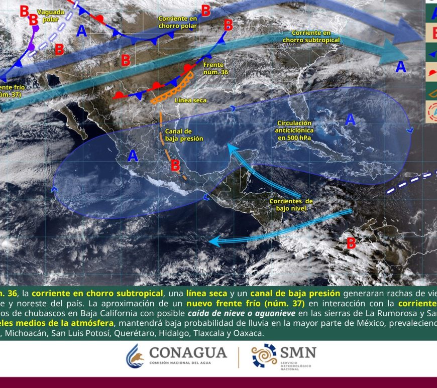 Cielo parcialmente nublado durante el día, sin lluvia en la región. Por la mañana, ambiente fresco a frío en la región, y ambiente muy frío a gélido con heladas en zonas serranas de Chihuahua y Durango. Durante la tarde, ambiente cálido a caluroso. Asimismo, prevalecerá la onda de calor en San Luis Potosí (centro). Viento de dirección variable de 40 a 50 km/h con rachas de 60 … Continúa leyendo Pronóstico Meteorológico