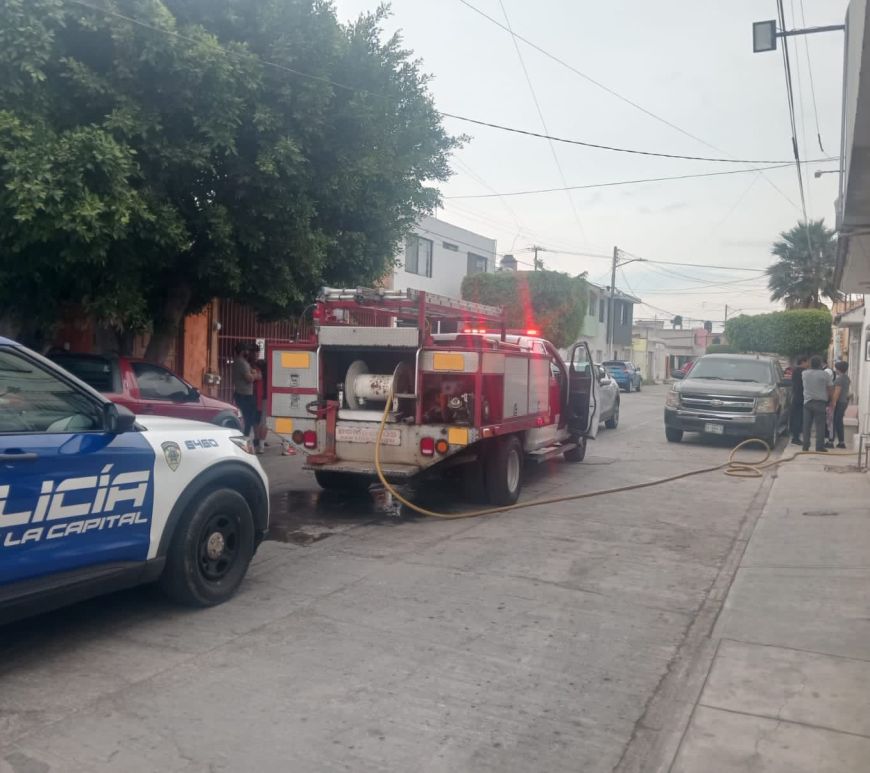 Oficiales de Guardia Municipal y Bomberos controlan incendio de vivienda en la colonia Popular