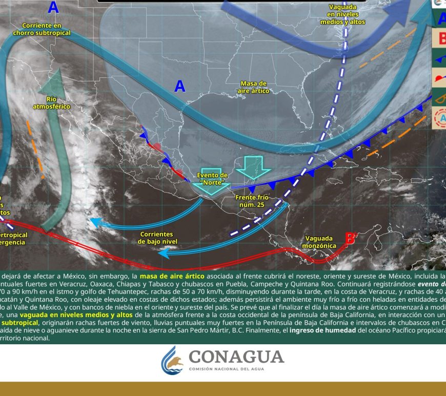 Condiciones de cielo medio nublado a nublado, con chubascos en Chihuahua y lluvias aisladas en Durango; sin lluvia en el resto de la región. Por la mañana, ambiente muy frío a frío en la región, con heladas y ambiente gélido en zonas serranas de Chihuahua y Durango. Durante la tarde, ambiente fresco a templado, y cálido en Durango (oeste). Viento de dirección variable de 10 … Continúa leyendo Pronóstico Meteorológico
