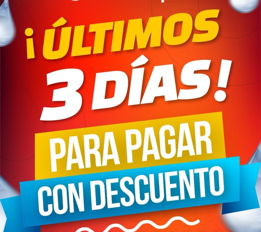Solo quedan tres días de incentivos fiscales en adeudos de agua y drenaje del 2024 o años anteriores. SLP.– Queda muy poco tiempo para aprovechar los descuentos del programa “Acaba tu deuda de una vez”, por lo que Interapas hace un llamado a los usuarios con adeudos de agua y drenaje a utilizar esta última semana para ponerse al corriente en sus pagos. El programa … Continúa leyendo Últimos días para aprovechar los descuentos del programa “Acaba tu deuda de una vez”