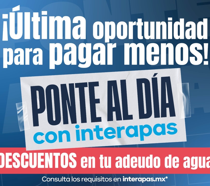 Última oportunidad para aprovechar el programa de descuentos “Ponte al Día con Interapas”