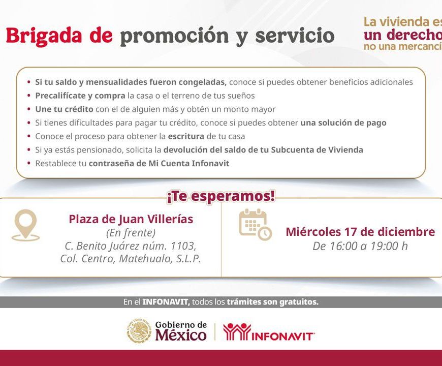 INFONAVIT realizará brigada de promoción y servicio en Matehuala