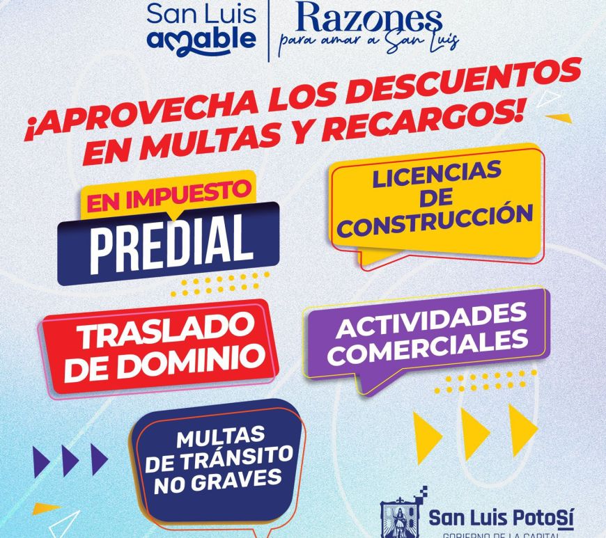 El Gobierno Municipal de San Luis Capital extiende una invitación final a la ciudadanía para ponerse al corriente con sus obligaciones fiscales antes del 31 de diciembre, ofreciendo porcentajes significativos de reducción en los últimos días de la campaña. El Gobierno Municipal de San Luis Capital recuerda a los contribuyentes que el mes de diciembre marca la recta final de la campaña «¡Llegaron los descuentos!». … Continúa leyendo Última llamada: aproveche los descuentos en multas y recargos que ofrece el Gobierno de la Capital