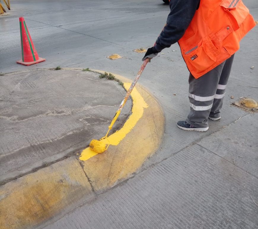 Gobierno de la Capital mejora la imagen urbana con pintado de guarniciones en la calle Belisario Domínguez
