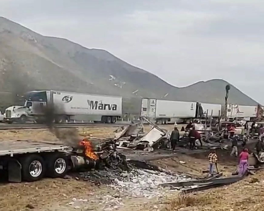 TRÁILERS EN LLAMAS PARALIZAN CARRETERA 57 RUMBO A MATEHUALA