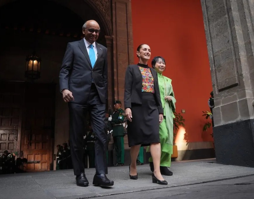 Ciudad de México, 1 de diciembre de 2025.- La Presidenta de México, Claudia Sheinbaum Pardo, recibió en Palacio Nacional a su homólogo de la República de Singapur, Tharman Shanmugaratnam, con quien posteriormente sostendrá una reunión privada, así como un encuentro con empresarios de ambas naciones.Como parte de la Ceremonia Oficial de Bienvenida, que se realizó en el Patio de Honor de Palacio Nacional, se entonaron … Continúa leyendo Recibe Presidenta Claudia Sheinbaum a su homólogo de la república de Singapur, Tharman Shanmugaratnam, en Palacio Nacional