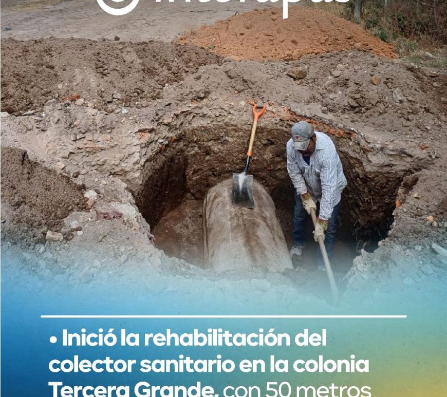 Interapas rehabilita colector sanitario en la colonia Tercera Grande