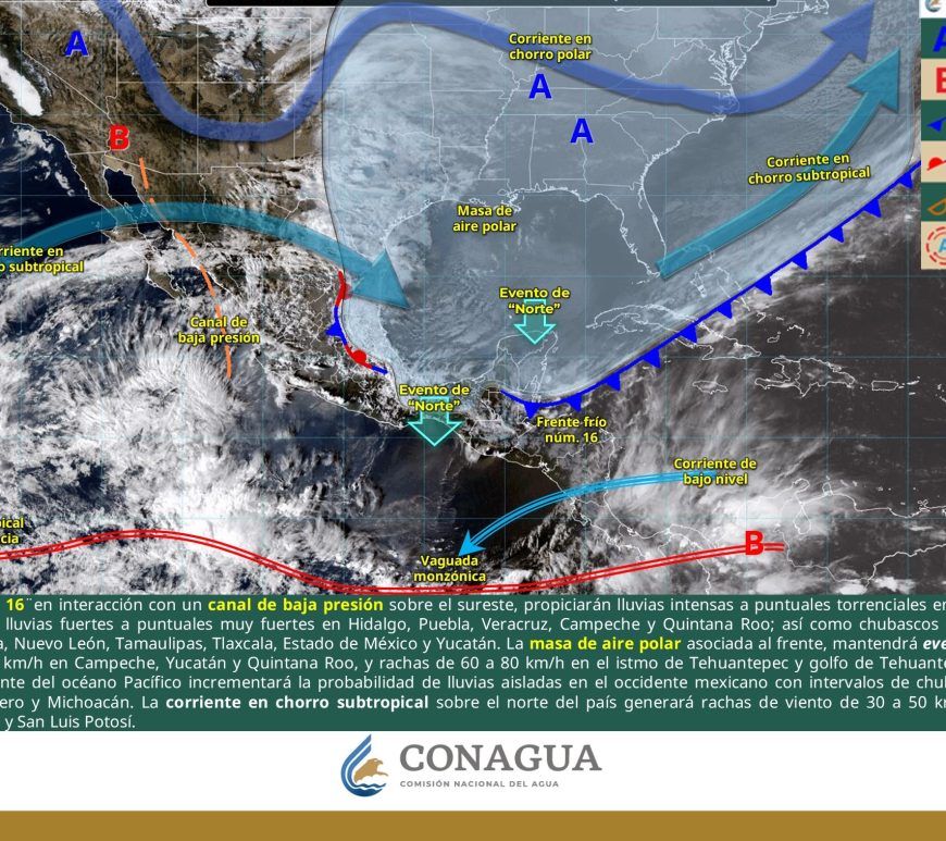 Cielo medio nublado a nublado con lluvias aisladas y posibles descargas eléctricas en San Luis Potosí (región Huasteca), Coahuila y Nuevo León. Cielo parcialmente nublado y sin lluvia en el resto de la región. Por la mañana, ambiente muy frío a frío con heladas en zonas montañosas, así como gélido en zonas serranas de Chihuahua y Durango. Bancos de niebla. Por la tarde, ambiente templado a cálido. … Continúa leyendo Pronóstico Meteorológico