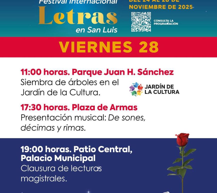 Invita Gobierno Municipal al cierre del XVIII Festival Internacional Letras en San Luis