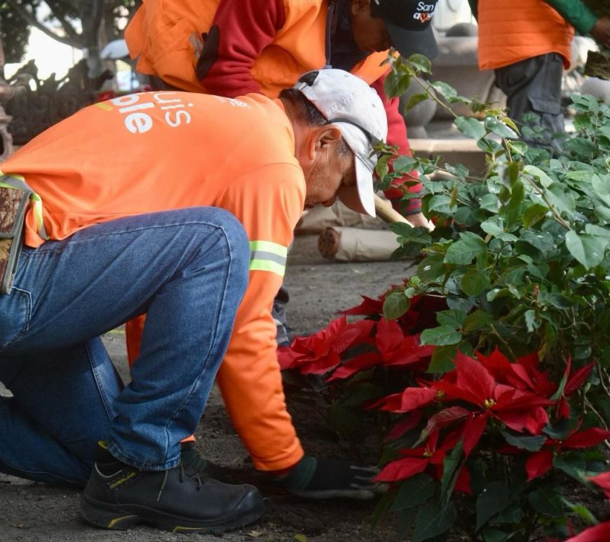 Ayuntamiento de SLP embellece espacios públicos con Nochebuenas