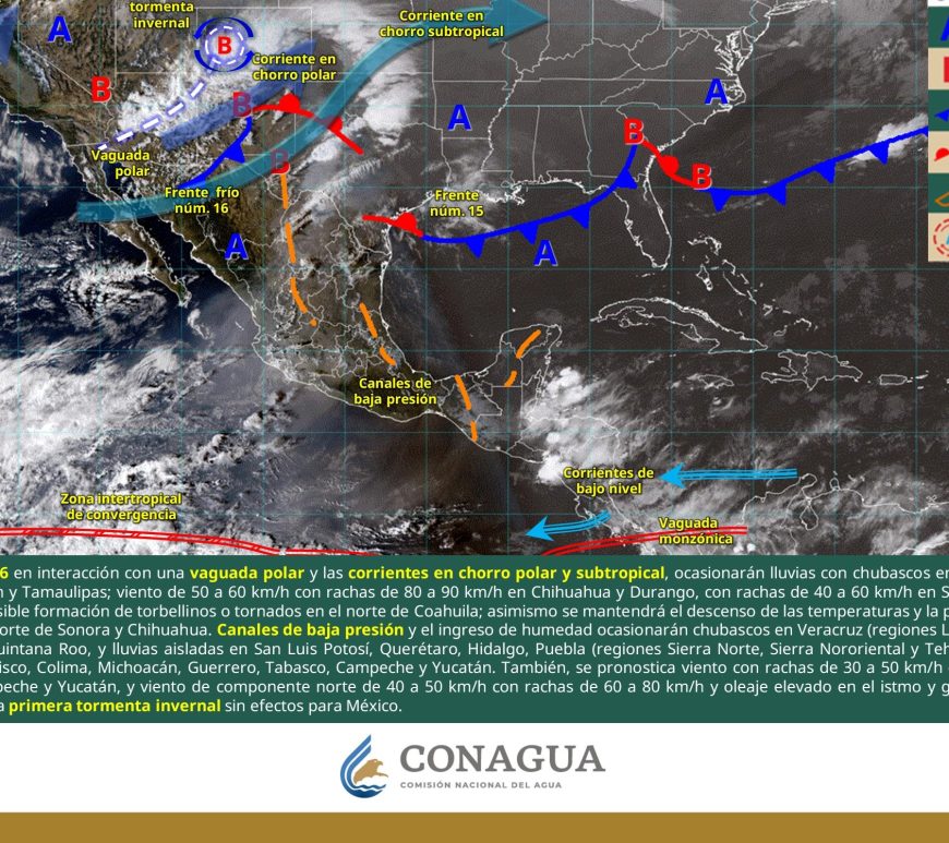 Cielo medio nublado durante el día, con lluvias aisladas en Coahuila, Nuevo León y San Luis Potosí. Cielo parcialmente nublado y sin lluvia en el resto de la región. Por la mañana, ambiente fresco a frío y bancos de niebla en la región; y muy frío a gélido con heladas en sierras de Chihuahua y Durango. Durante la tarde, ambiente templado a cálido. Viento de … Continúa leyendo Pronóstico Meteorológico