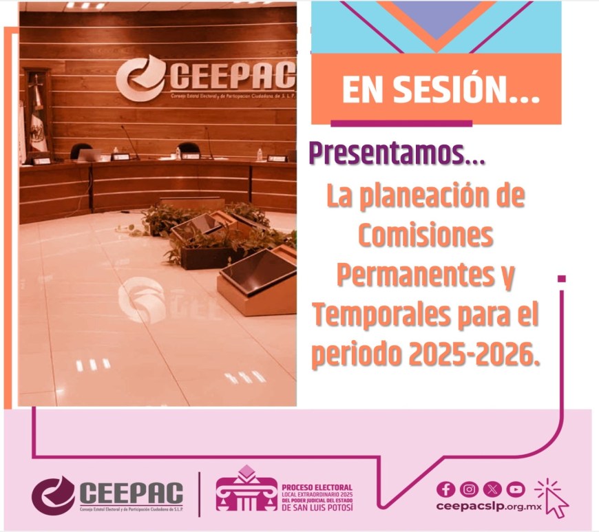 El Consejo General del Consejo Estatal Electoral y de Participación Ciudadana (CEEPAC) en sesión ordinaria aprobó la designación de las secretarías técnicas propietarias y suplentes de las Comisiones Permanentes y Temporales del CEEPAC para el periodo 2025-2026. Estas designaciones permiten asegurar la continuidad, coordinación y desempeño técnico de cada comisión, con el fin de fortalecer los trabajos institucionales y garantizar el cumplimiento de los objetivos … Continúa leyendo CEEPAC presenta planes de trabajo para sus comisiones del periodo 2025-2026.