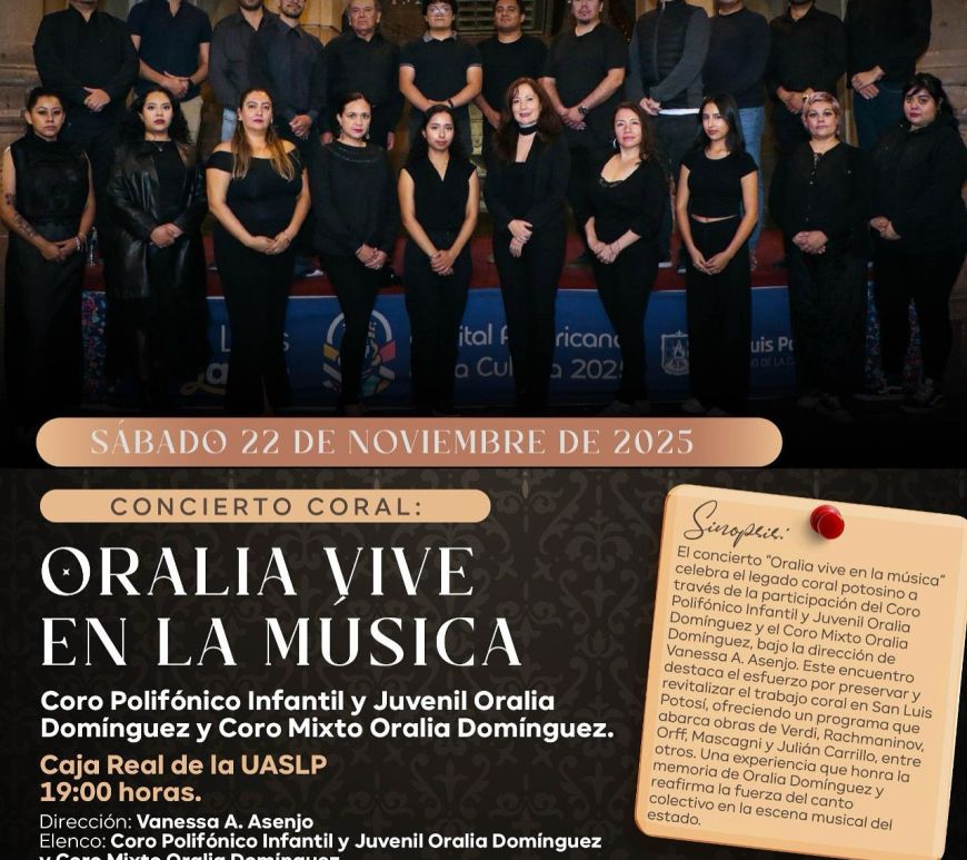 El Gobierno Municipal de San Luis Potosí, gracias al decidido impulso del Alcalde Enrique Galindo Ceballos, continúa fortaleciendo las expresiones artísticas y el reconocimiento al patrimonio cultural de nuestro municipio. En ese marco, la Dirección de Cultura Municipal, encabezada por su titular Martín Juárez Córdova, extiende una invitación abierta al público potosino para asistir al Concierto Coral “Oralia vive en la música”, un homenaje especial … Continúa leyendo Gobierno Municipal invita al concierto-homenaje “Oralia vive en la música”