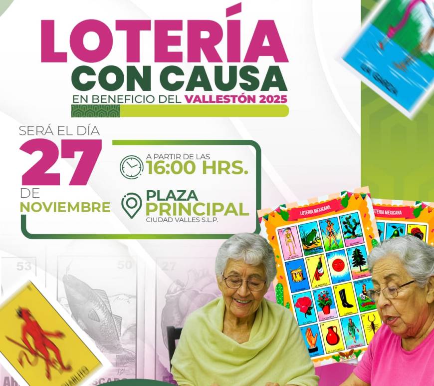 La Dirección de Atención al Adulto Mayor, del H. Ayuntamiento de Ciudad Valles, invita a la ciudadanía a participar en la Lotería con Causa, actividad organizada para apoyar el Vallestón 2025, iniciativa que promueve acciones solidarias en beneficio de quienes más lo necesitan. El evento se realizará el 27 de noviembre, a partir de las 16:00 horas, en la Plaza Principal de Ciudad Valles, donde … Continúa leyendo Invitan a participar en la lotería con causa en apoyo al Vallestón 2025