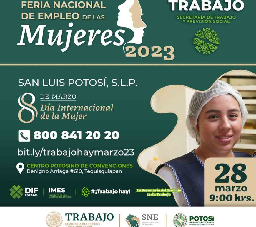 Habrá talleres para buscadores de empleo, en los que se brindará información valiosa para la preparación de entrevistas y elaboración de currículum vitae A fin de continuar con la estrategia de facilitar a las y los potosinos el acceso a oportunidades laborales, emprendida por el Gobierno del cambio que encabeza, Ricardo Gallardo Cardona, la Secretaría del Trabajo y Previsión Social (STPS), en coordinación con el … Continúa leyendo Promueve en SLP Gobierno del cambio, Feria Nacional de Empleo de las Mujeres